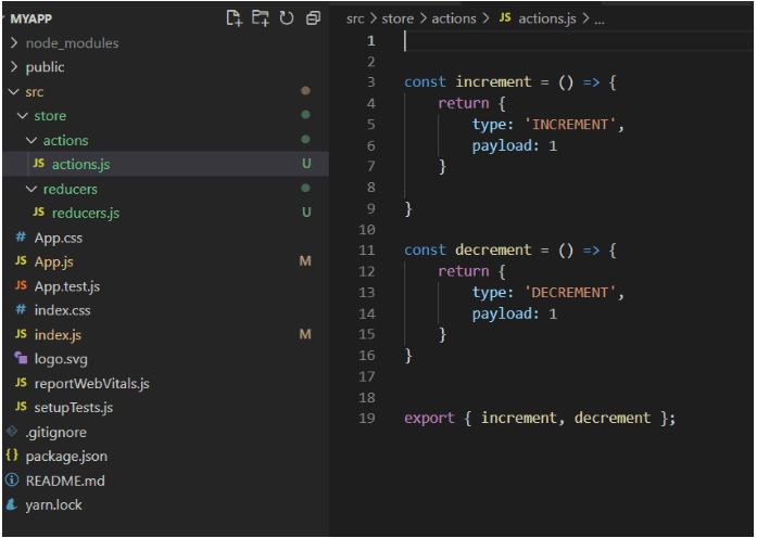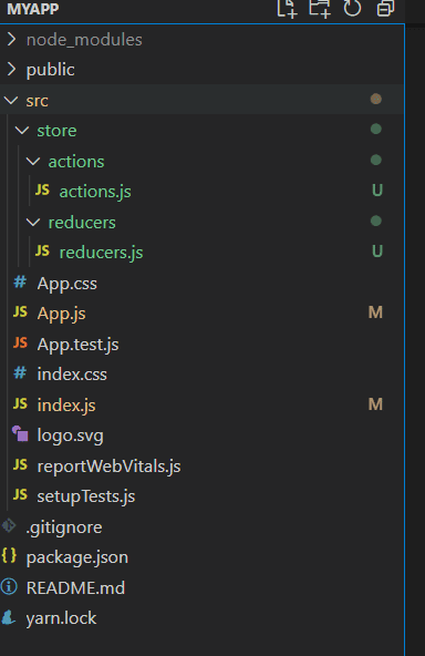 Create a folder called Store after the installation is complete. Create two new folders under this one, one named actions and the other named reducers.