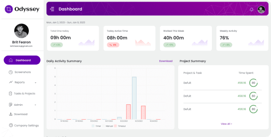 An extensive employee time tracking & activity monitoring application designed to help businesses manage their projects and teams more effectively. Monitor your team’s activity in real-time & ensure work gets done on time with Odyssey.Â