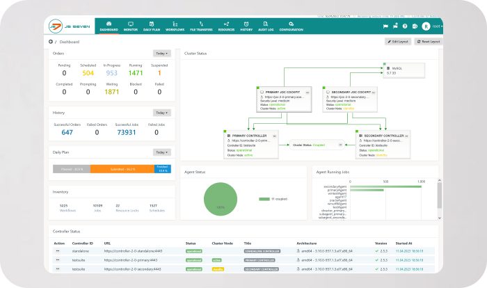 JS7 JobScheduler allows you to optimize and to increase your performance by automating IT tasks & file transfers (FTPS, SFTP etc.) thanks to a unique user interface which facilitates the creation, administration and supervision of your scheduling environment in real time.