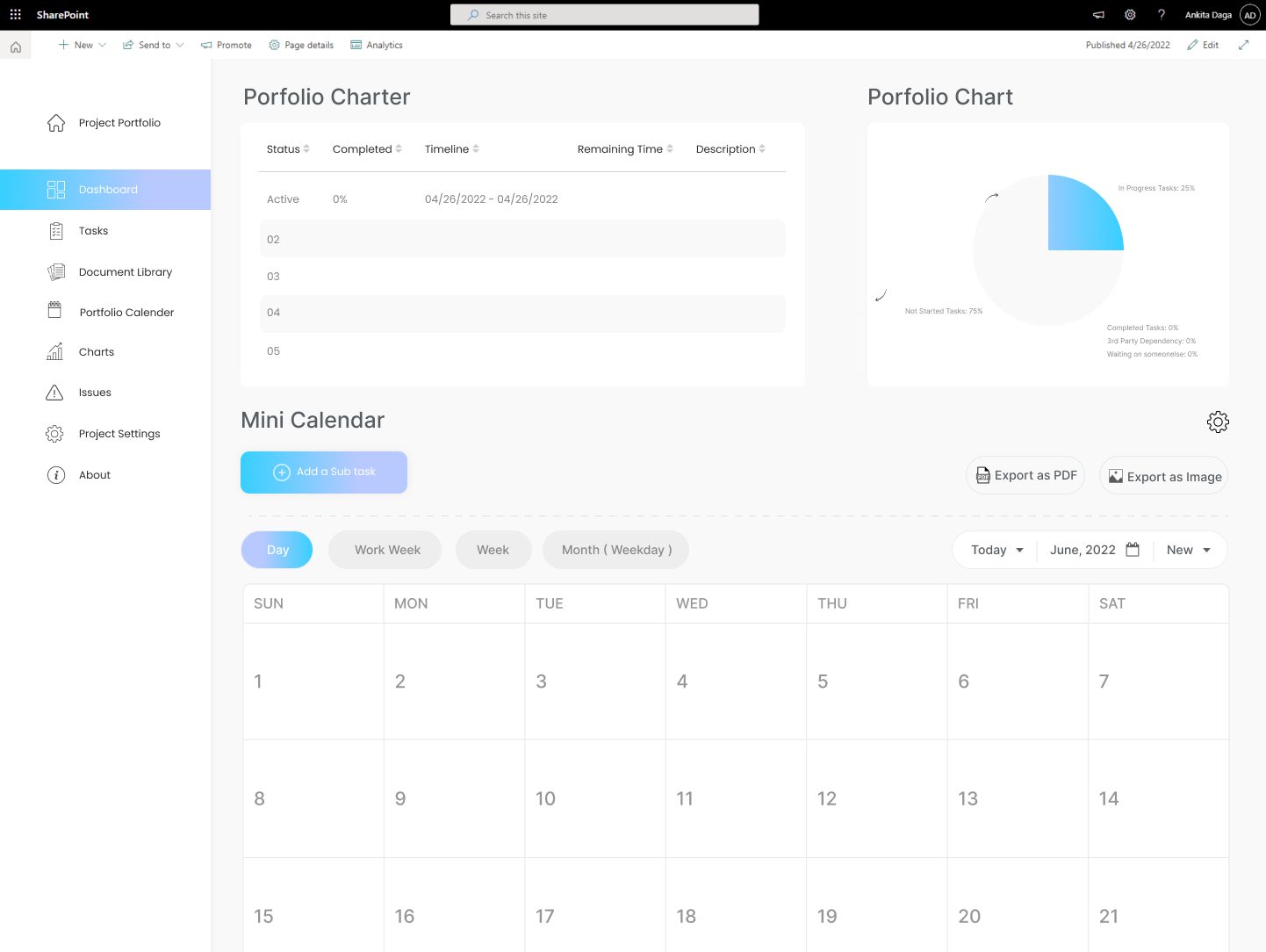 Project-Management-Central is a privilege for organizations to oversee progress, ultimately empowering them with prescience using SharePoint Project Tracker. This tool intuitively unifies the project calendars, tasks, lists, milestones, and documents. The data is protected with a high level of security due to the restricted access making it available only to the people concerned. With an abridged portfolio and enhanced project management software, a greater and more intuitive SharePoint project portfolio site can be created which is capable of tracking progress visually and contains a unique dashboard for every single project.