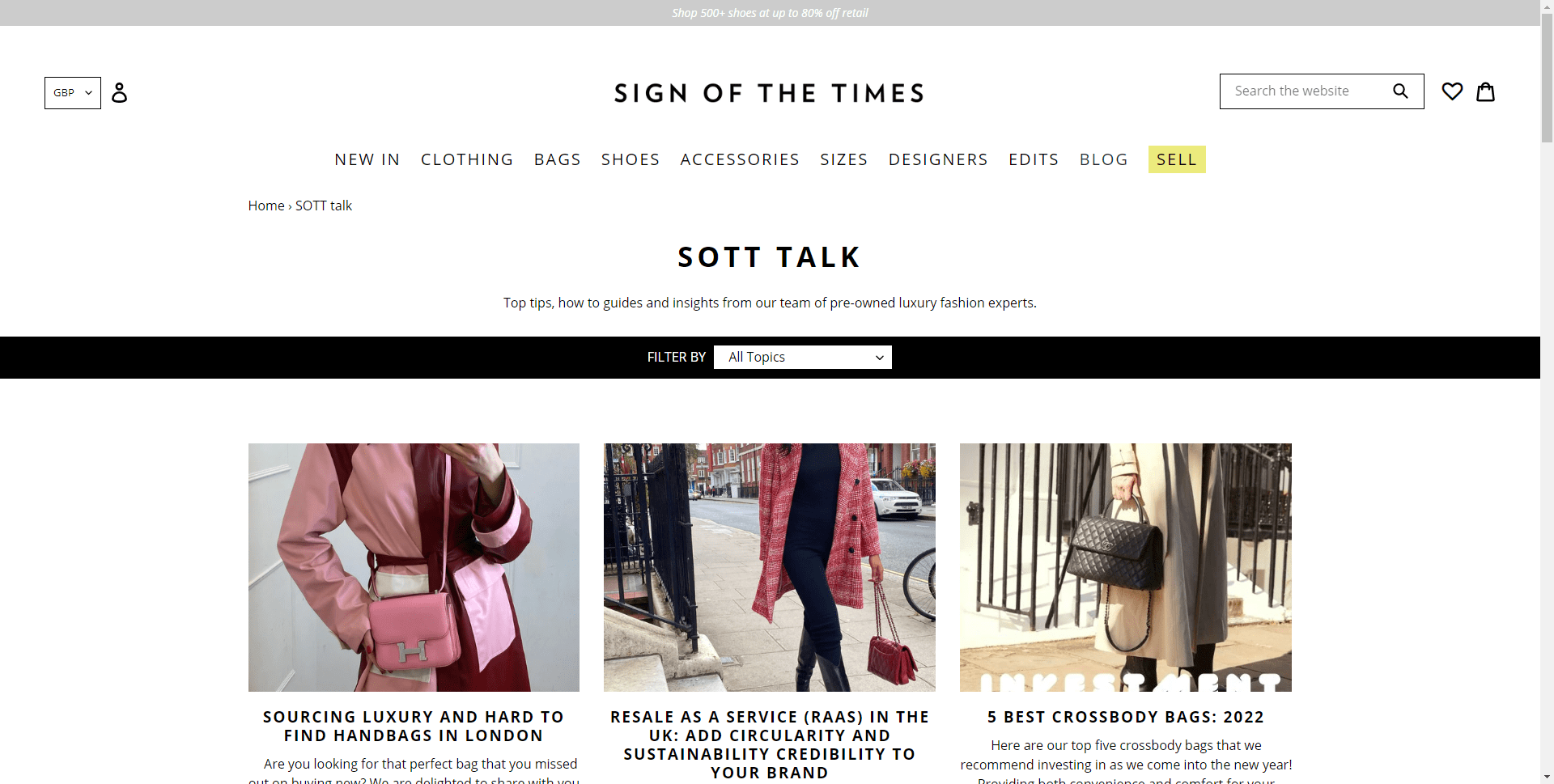 Sign of the times (wearesott.com) is a luxury London-based marketplace where you can buy and sell pre-owned designer clothing, handbags, shoes, and accessories from well-known designer brands. The organization also supports women’s empowerment because the firm was founded by women, offers products for women, and has a female leadership team.
