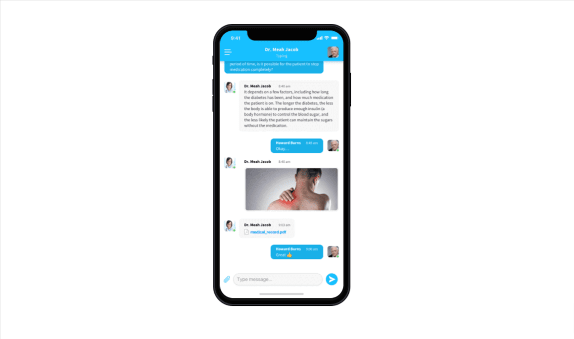 Virtual healthcare is a mobile app that functions as a doctor-patient communication platform, allowing users to communicate with doctors through chat and get immediate medical assistance. People may keep track of their medical history and share reports, documents, images, and videos to help doctors better understand their problems.