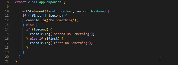 In the below image, I’ve added a function in the “Component” file where two parameters are declared as Boolean types and added nested conditions to ‘do something’.
