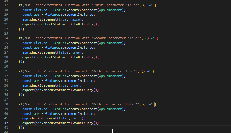 In below the image I’ve added four test cases with possible scenarios of checking condition statements by simply calling that “checkStatement” function in ‘Test File’. You will find an fantastic report on it.