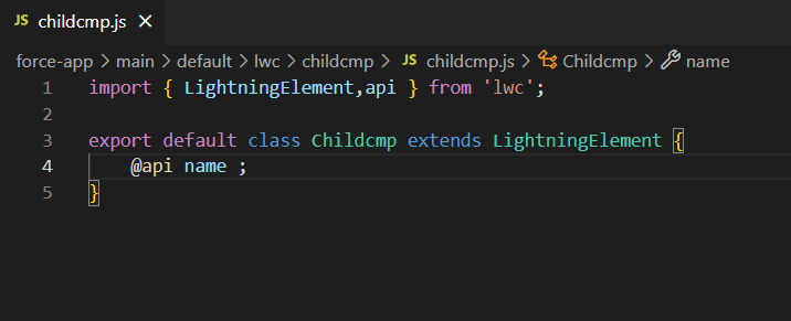For creating the public property, we have to use @api decorator. For that, first, we need to import api from the lwc package.